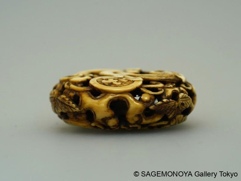 SAGEMONOYA > Netsuke > Manju, Ryusa, Kagamibuta, etc. > 波に雨龍図 波に雨龍図 Reserved Manju, Ryusa, Kagamibuta, etc. 無銘 48mm 透彫根付 お問い合わせ Return to gallery お取り扱い作品 根付 Netsuke 形彫根付(人物・霊獣・動物・その他) 饅頭・柳左・鏡蓋根付・その他 面根付 現代根付 Items under 980 US$ 提物 Sagemono 印籠 緒締 矢立 煙管筒 木刀 とんこつ・煙草入・煙管・その他 Pick up Catalogues Exhibitions Artists