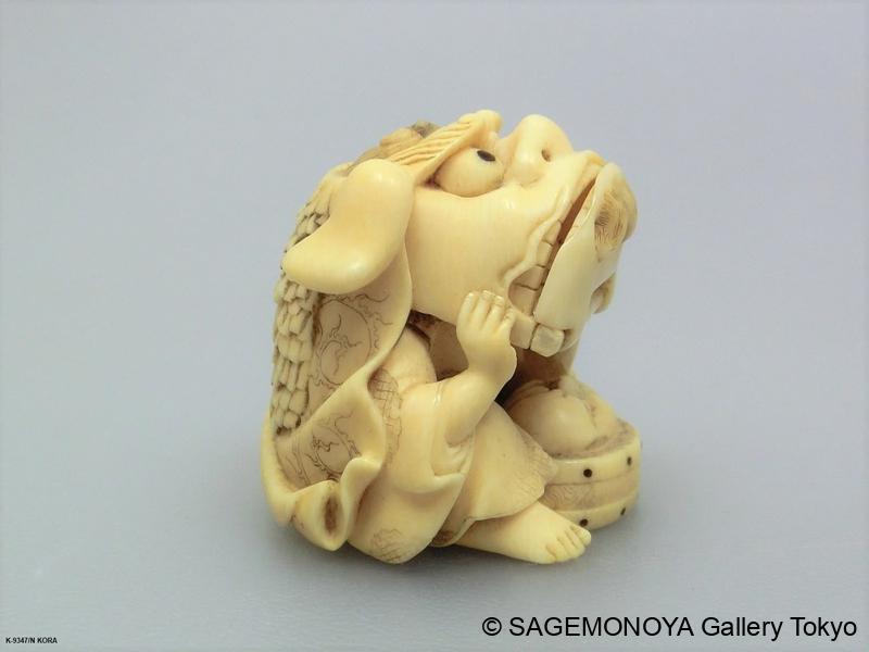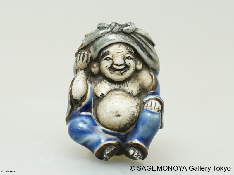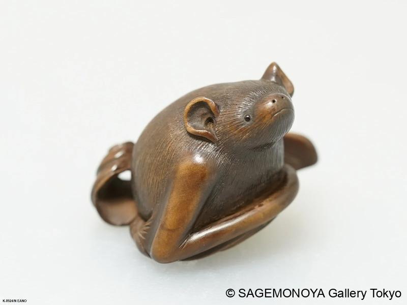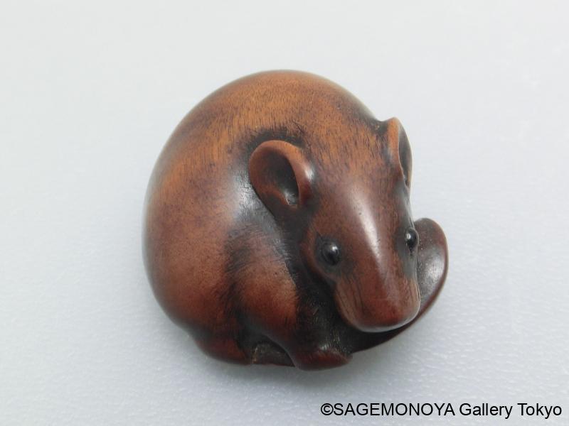 Rat holding a bean pod 3.8cm Signed ISSAI