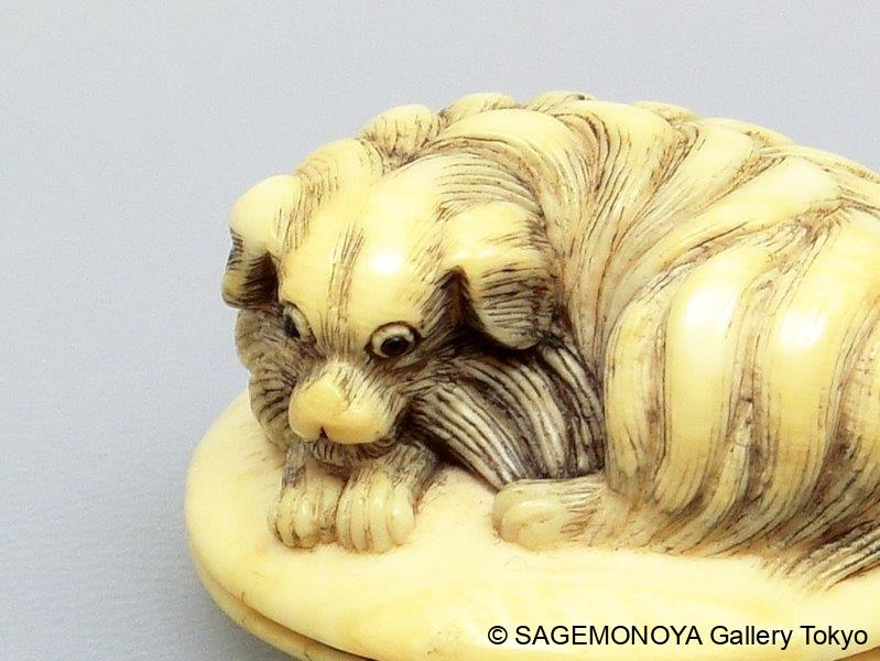 SAGEMONOYA > Netsuke > Figures & animals > Dog on a cushion Dog on a cushion New Figures & animals Unsigned 3.8cm Enquiry Return to gallery Product categories 根付 Netsuke Figures & animalse Manju, Ryusa, Kagamibuta, etc. Masks Contemporary Items under 980 US$ 提物 Sagemono Inro Ojime Yatate Pipecases Bokuto Tonkotsu, pouches, pipes, etc. Pick up Catalogues Exhibitions Artists