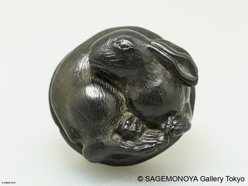 Rabbit and waves 3.7cm Signed HOKUZAN