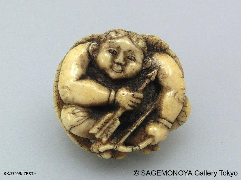 Cupid with bow and arrow 3.2cm Signed IKKOSAI